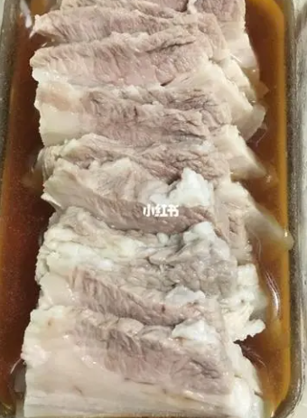 ①买回来的五花肉清洗干净,切成厚片;
