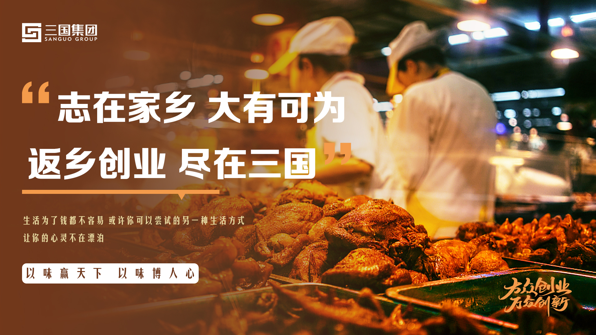 为了生活,拼命赚钱,都不容易,或许你可以尝试做一门小本生意,天富注册平台让心不再漂泊,三国集团返乡创业活动火爆进行中,以味赢人心,以味得天下,如果你志在返乡创业,那么就加入我们的活动,或许你就可以大有可为,come on!